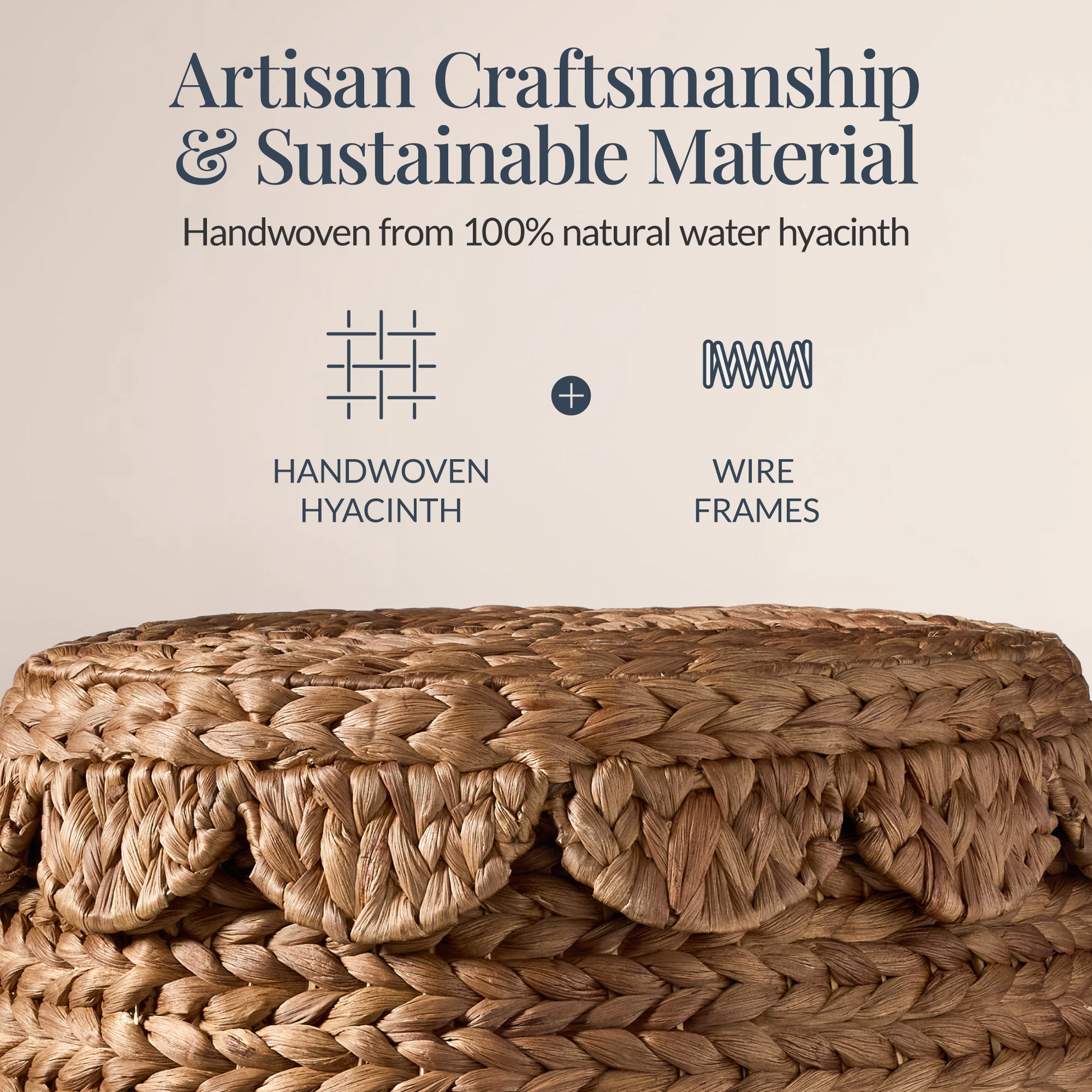 - ARTISAN CRAFTSMANSHIP & SUSTAINABLE MATERIALS: Handwoven from 100% natural water hyacinth in Vietnam, each piece is unique with slight size and color variations, and a natural earthy scent that will fade within 24–72 hours