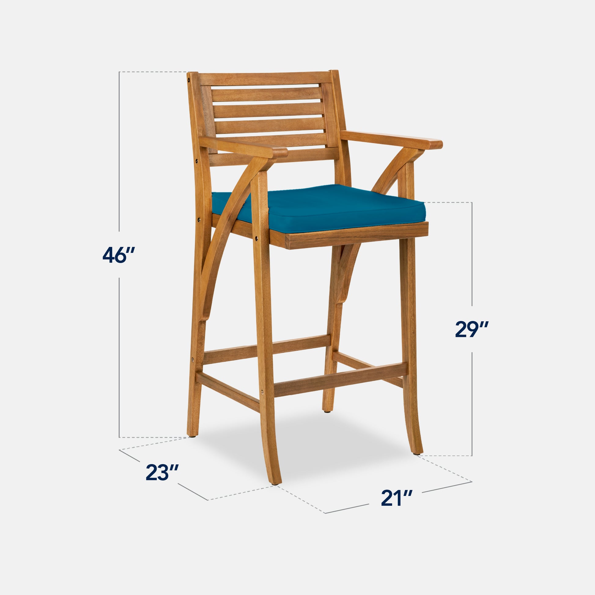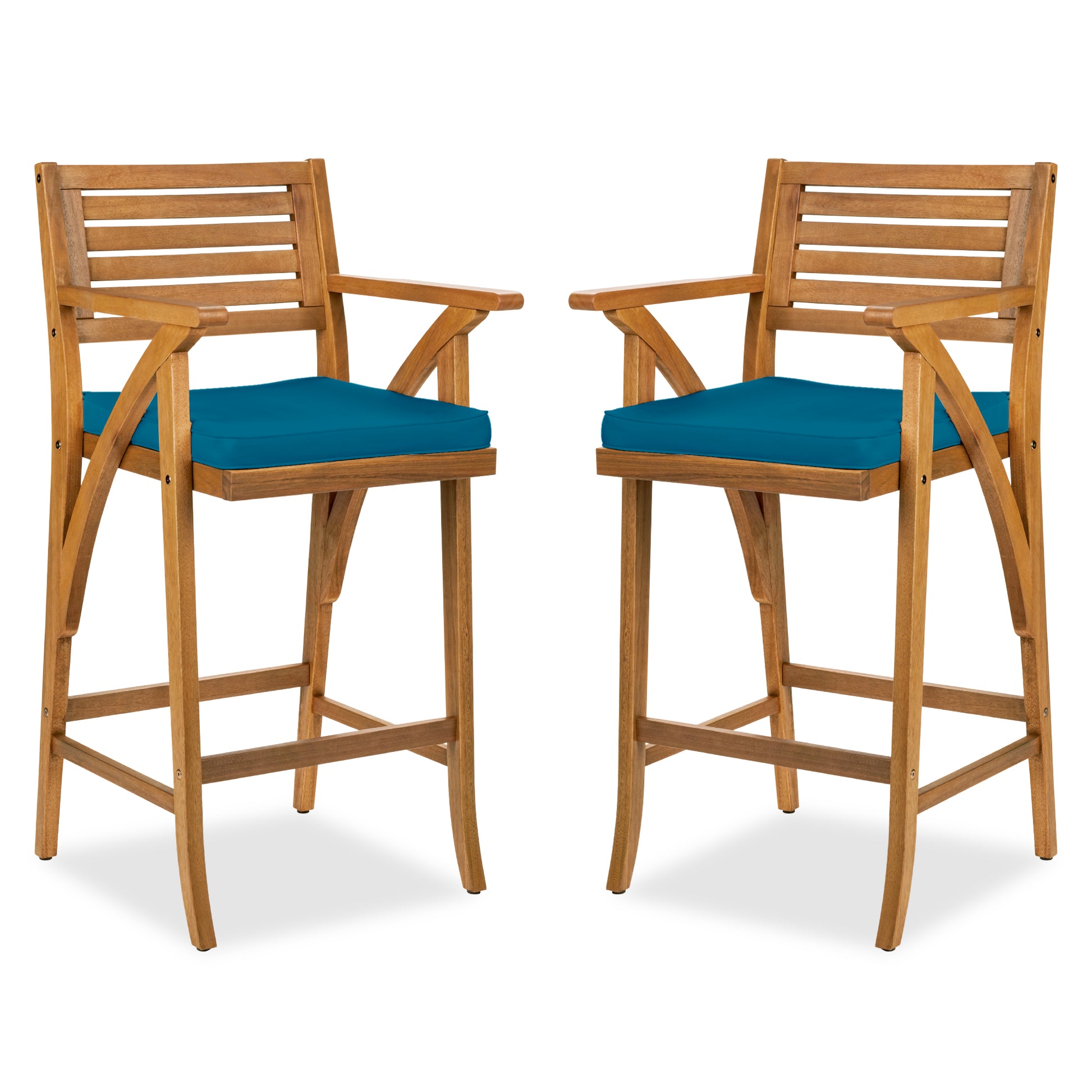 Set of 2 Outdoor Acacia Wood Bar Stools Chairs w/ Weather-Resistant Cushions