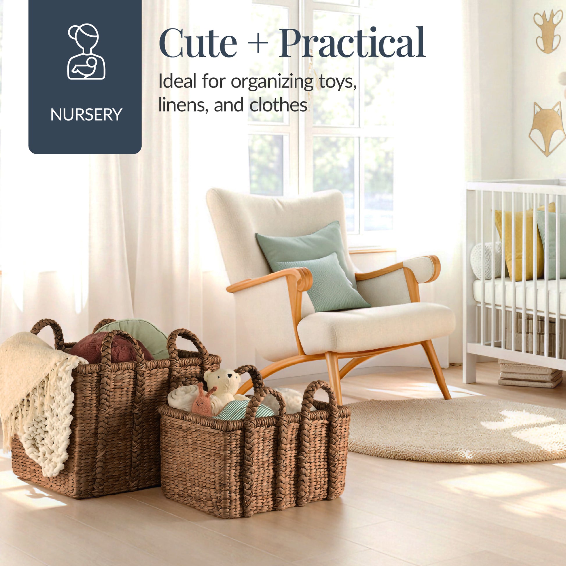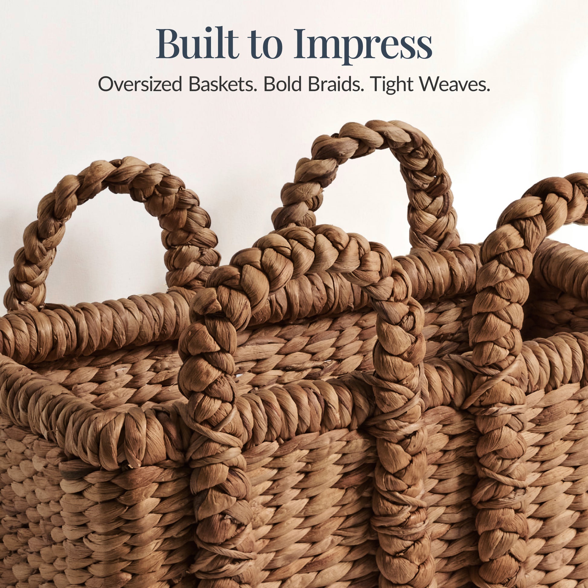 Set of 3, Water Hyacinth Chunky Baskets w/Handles