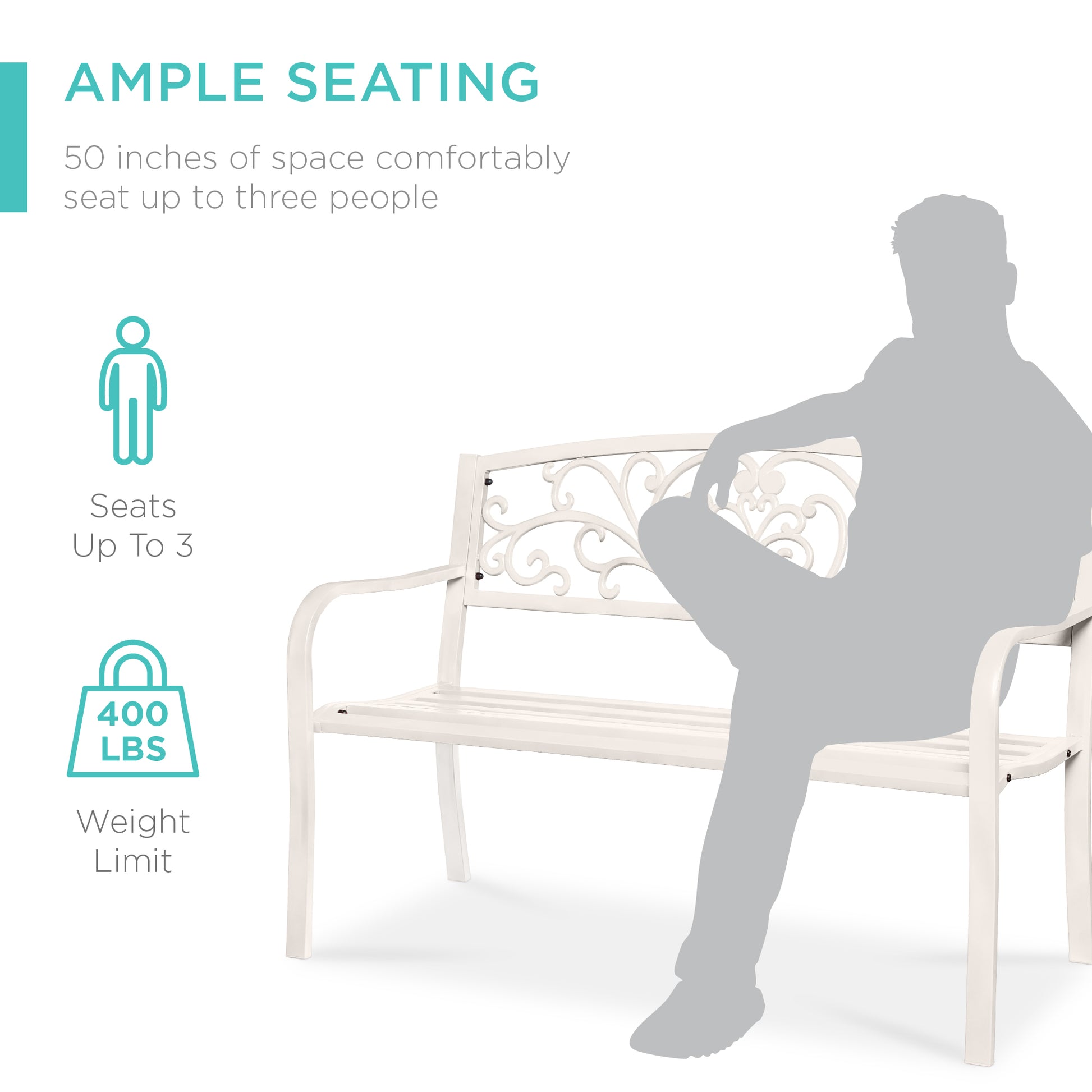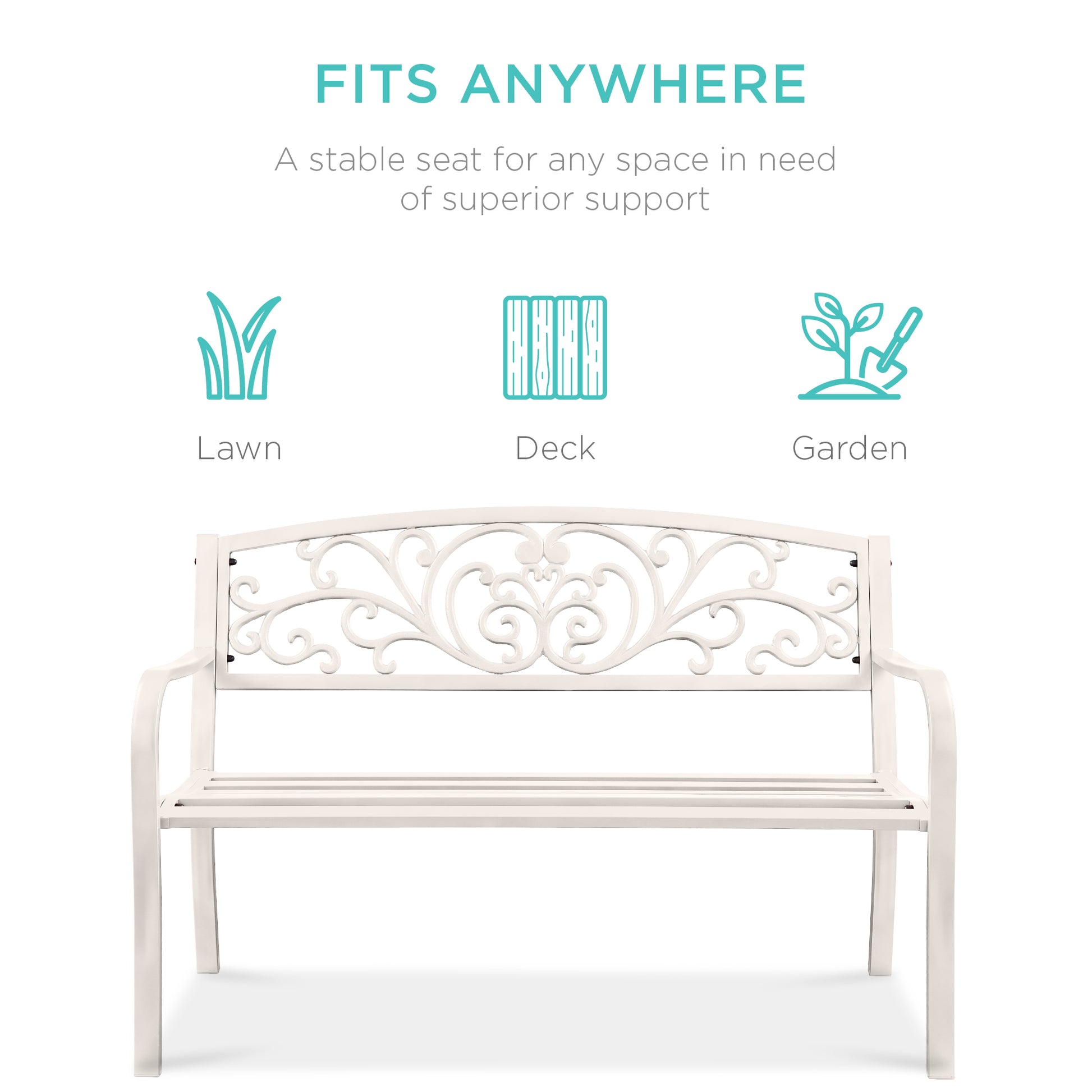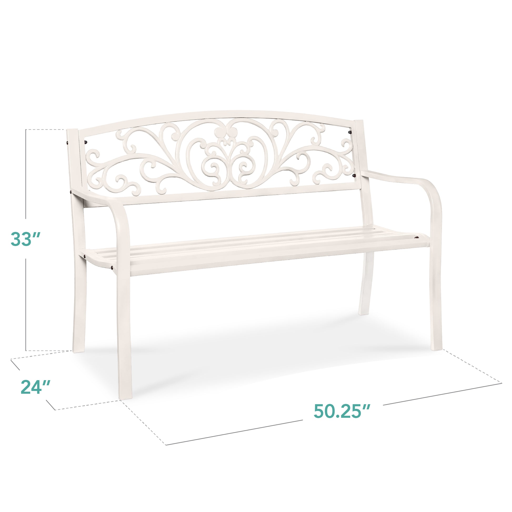 Steel Bench for Outdoor, Patio, Garden w/ Floral Design - 50in